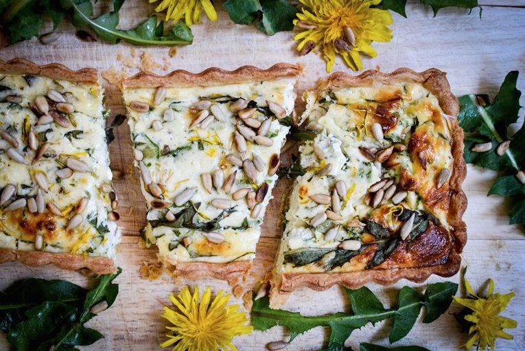 Zamesimo testo, ga zavijemo v folijo in postavimo na hladno, kjer naj počiva. Medtem pripravimo nadev. Regrat očistimo, preberemo in operemo pod tekočo vodo. Do suhega ga posušimo in narežemo na približno dva centimetra dolge koščke. Slanino narežemo na kocke ali tanjše rezine.