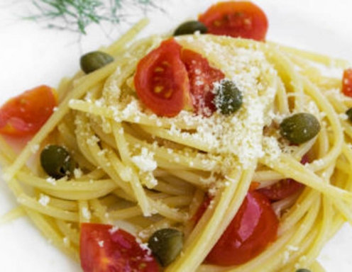 Špageti s kaprami in paradižnikom