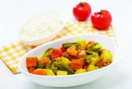 Na zmernem ognju kuhamo približno deset minut, da je cvetača kuhana, a še vedno čvrsta. Če omaka postaja pregosta, dodamo malo vode. Po okusu solimo in popramo ter še vroče postrežemo s kuhanim rižem ali nekvašenim kruhom (najboljši trgovinski približek so tortilje za mehiške jedi).