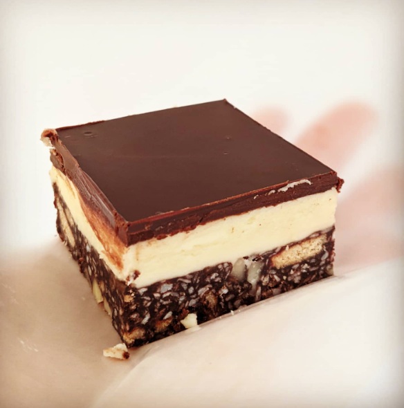 Za preliv čokolado in maslo segrevamo na majhnem ognju ali nad paro, lahko tudi v mikrovalovni pečici. Zlijemo ga na kremo in poravnamo, po želji lahko z vilicami naredimo črtast vzorec. Ko se glazura strdi, zmes s pomočjo folije vzamemo iz pekača in jo narežemo na ploščice.