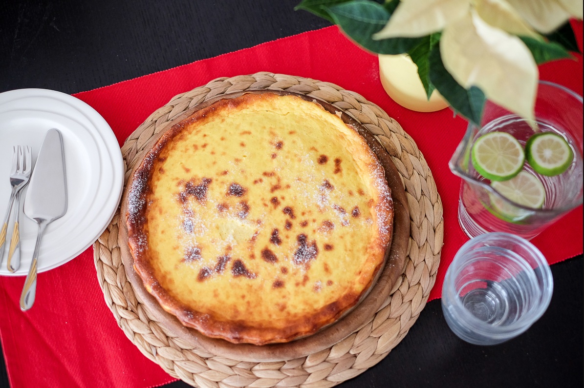 Za nadev zmešamo skuto, kislo smetano, mleko, sladkor in jajca. Vanilijev strok prerežemo ter dodamo sredico v maso.