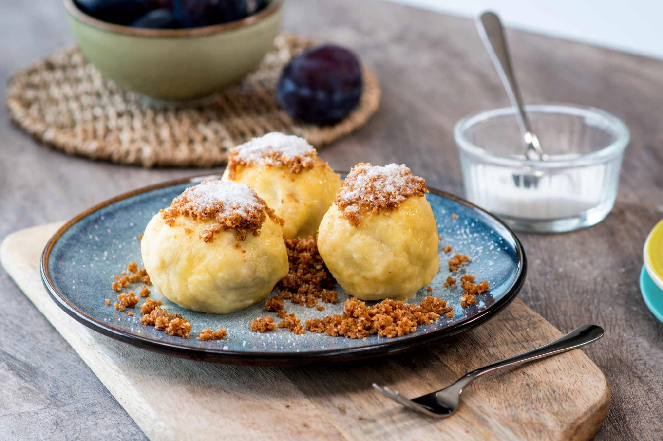 Skutni cmoki so resnična domača jed, ki se jo spomnimo še iz otroštva. Tokrat so pripravljeni s svežimi slivami iz domačega vrta in posuti s klasično kombinacijo drobtin, sladkorja in masla. V posip lahko dodaš še mlete mandlje za nekoliko bolj bogat okus.