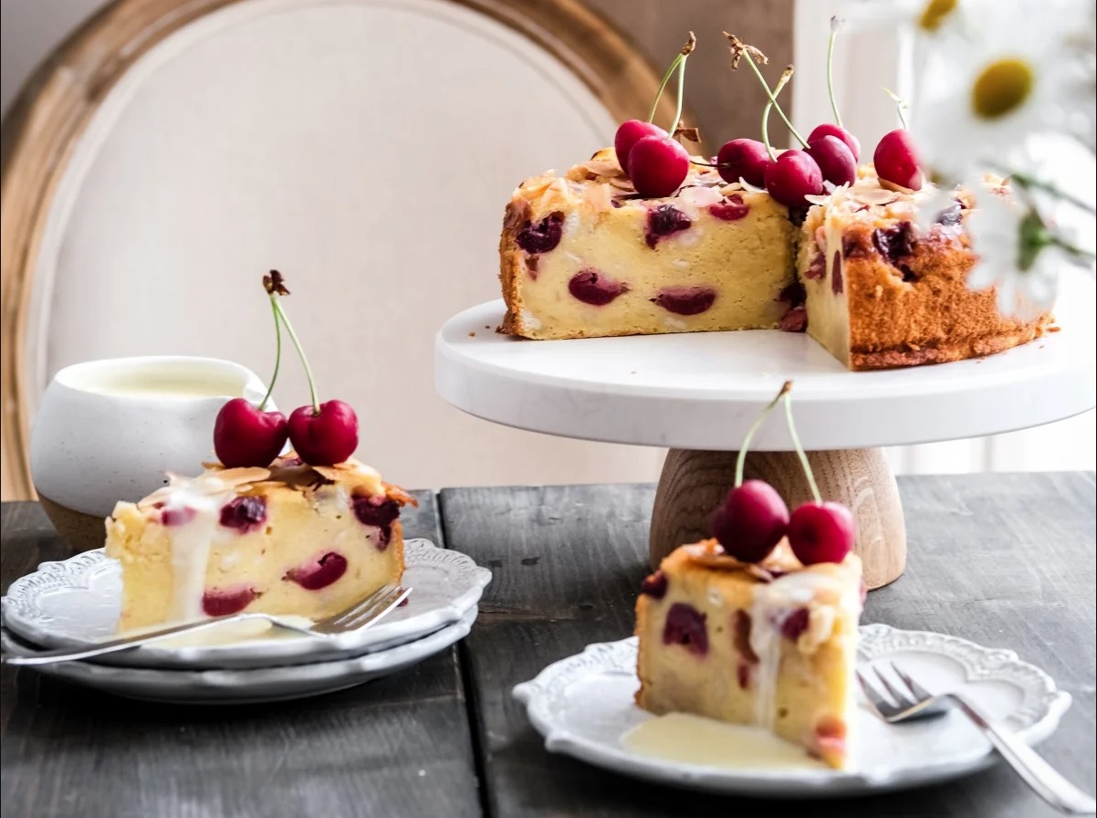 Kolač, ki je neverjetno domiseln za pripravo, je topla in kremasta dobrota, ki jo v Nemčiji radi pečejo v času češenj.