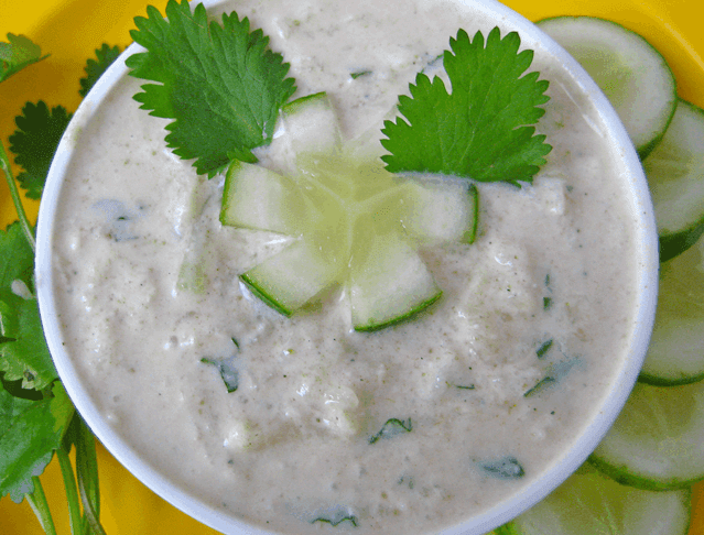 Raita s kumarami in meto je odličen vir toplote poleti. To omako lahko postrežete z različnimi jedmi.