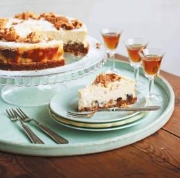 V skledo stresemo rozine, jih prelijemo z likerjem in pustimo namakati eno uro. Pečico segrejemo na 180 °C in z maslom premažemo okrogel model premera 24 cm. Obe vrsti piškotov zdrobimo in jih zmešamo s stopljenim maslom. Vse skupaj stresemo v model in z rokami utrdimo. Pečemo 5 minut, nato pa vzamemo iz pečice in ohladimo.