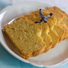 175 g zmehčanega masla 175 g sladkorja v prahu 3 večja jajca 250 g moke pol kavne žličke sode bikarbone 2 do 3 žlice mleka naribana lupina ene limone kandirana limonina lupina ali kosi kandirane limone za okras