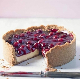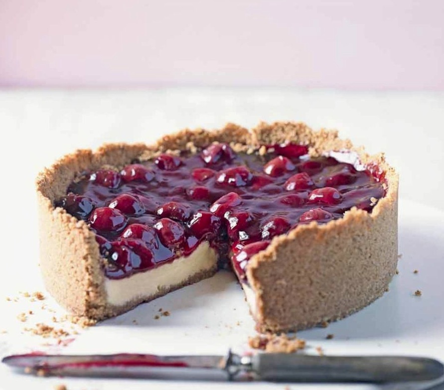 Kremni sir ali skuto zmešamo z jajci in sladkorjem, da dobimo gladko maso. Prelijemo jo v pekač, obložen s piškotno maso, in pečemo 30 minut ali tako dolgo, da se torta speče. Hladimo jo 30 minut, medtem pa pripravimo češnjev nadev.