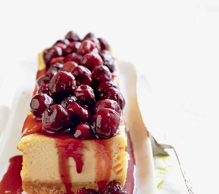 Slastni cheesecake lahko pripravimo tudi v podolgovati različici in ga postrežemo kot rezine