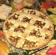 Kolač odstranimo iz pekača, ga premažemo z oblivom, posipamo s preostalimi oreški in postrežemo.