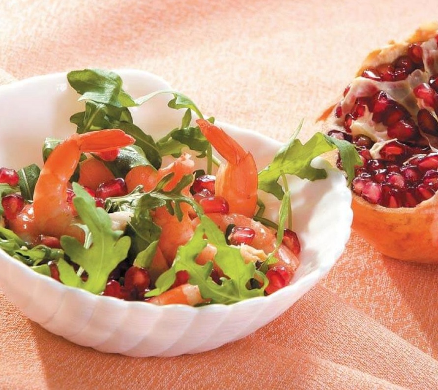 KUHINJA.COM | Solata z rukolo, kozicami in granatnim jabolkom ...