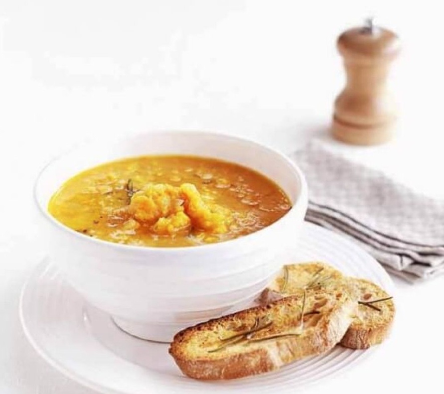 KUHINJA.COM | Juha iz sladkega krompirja s popečenimi česnovimi kruhki ...