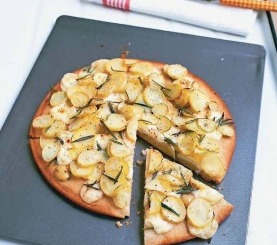 Sestavine 2 testeni osnovi po 150 g 230 g mladega krompirja 2 žlici oljčnega olja 2 vejici rožmarina sol poper 100 g sira brie