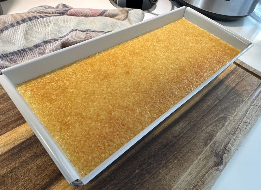 Karamel vlijemo v pekač, tako da je oblito oziroma prekrito celotno dno.
