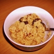 Pečico segrejemo na 180 °C. V razžvrkljana jajca ali beljake dodamo ovsene kosmiče, dobro premešamo in pustimo stati 5 do 10 minut, da kosmiči malo nabreknejo. Medtem hruške drobno naribamo in jih dodamo kosmičem. Primešamo še vaniljo in, po želji, cimet.