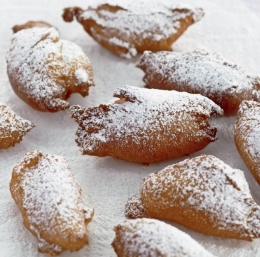 500 g moke 3 dl mleka 20 g kvasa 80 g razpuščenega masla 3 žlice sladkorja v prahu 3 rumenjaki olje za cvrenje slivova marmelada sladkor v prahu za posip