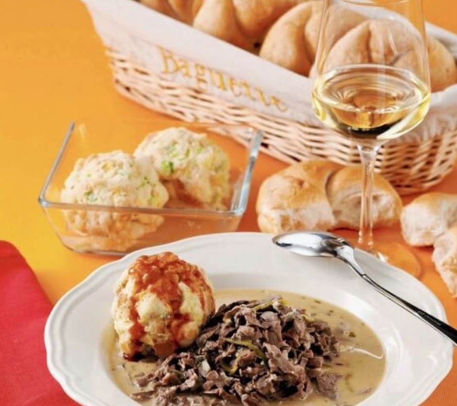 Pljučka v omaki postrežemo s kruhovim cmokom.