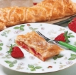 Tretjino testa vzdolžno premažemo s skutnim nadevom in obložimo z jagodami. Testo preganemo čez nadev, zvijemo v zavitek in položimo na pekač, ki smo ga obložili s papirjem za peko. Zavitek premažemo s stepenim jajcem. Na površini zavitka naredimo mrežo iz ostankov testa; mrežo prav tako premažemo z jajcem. Zavitek pečemo v prej ogreti pečici približno 40 minut do lepe zlato rjave barve. Šele ko se zavitek v pekaču ohladi, ga razrežemo na primerne kose.