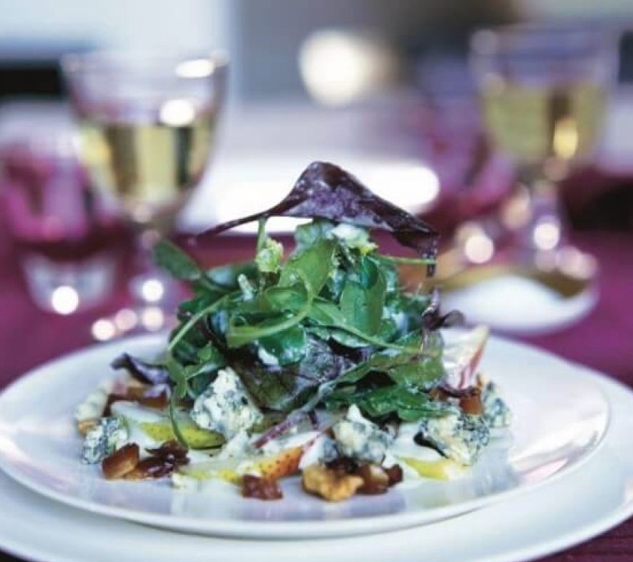 KUHINJA.COM | Solata s hruško, datlji in orehi ter prelivom iz sira z modro plesnijo ...
