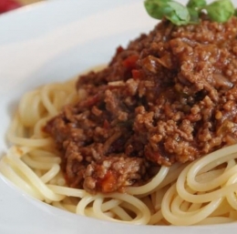 Na prepraženo čebulo položimo meso, dobro premešamo in ga z leseno lopatko med praženjem razdrobimo, da ni večjih kep. Po približno 10 minutah, ko je meso že lepo rjavo, dodamo sesekljan česen, premešamo in počakamo, da zadiši, nato dodamo sesekljane pelate, paradižnikovo mezgo in peteršilj. Solimo in popramo. Kuhamo še 15 minut, da se omaka zgosti.