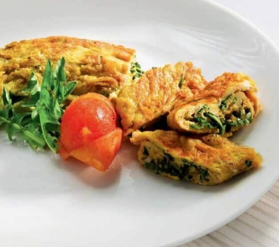 Regratovo omleto z ene strani z lopatico malo privzdignemo in zvijemo proti drugi strani. Preložimo jo na krožnik in postrežemo.