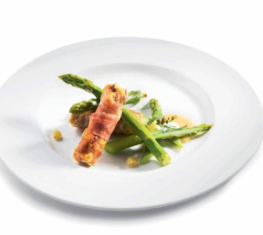 Fuje postrežemo s kuhanimi šparglji in doma narejeno majonezno omako, ki jo obogatimo s sladko smetano in gorčičnimi semeni.