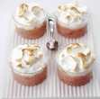 Medtem ko se rabarbarina mešanica peče v pečici, beljake stepemo s polovico preostalega sladkorja v čvrst sneg. Preostalo polovico previdno vmešamo v že stepen sneg. Sneg razdelimo v skodelice z rabarbaro. Vrnemo v pečico za 10 minut, da se vetrci zlato rjavo zapečejo. Takoj postrežemo.