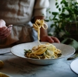 Testenine odcedimo, malo vode, v kateri so se kuhale, pa prihranimo. Vmešamo jih v omako, in če je potrebno, dodamo še malo vode, da jed ni preveč gosta. Razdelimo na 4 krožnike, posujemo s preostalim peteršiljem in postrežemo.