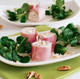 KUHINJA.COM | Šunkini zvitki s sirnim namazom, hrenom in orehi ...
