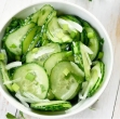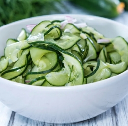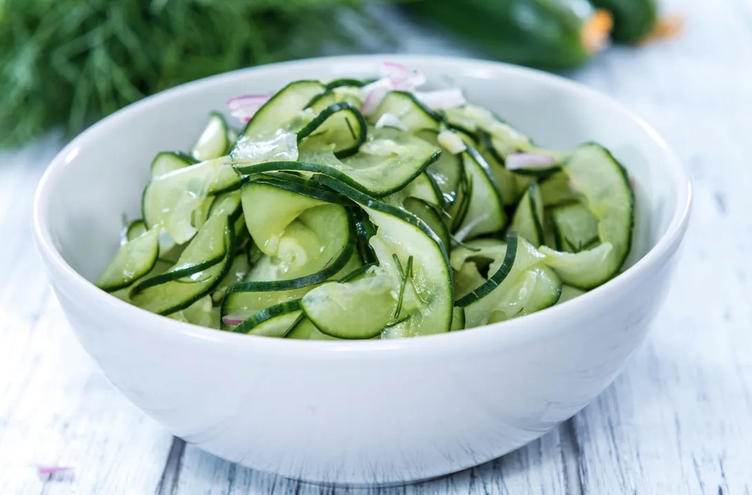 Glavni junaki te preproste in osvežilne solate so tanko narezane kumare, nežno narezana rumena čebula ter ščepec dišečega kopra. A prava skrivnost te solate se skriva v marinadi, ki ji daje popoln okus in ki jo lahko pripravite v nekaj minutah.