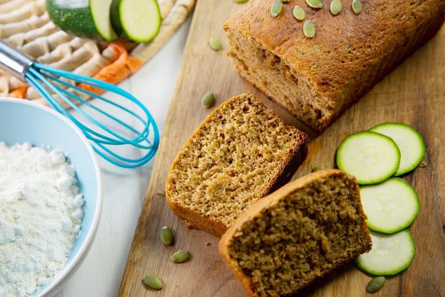 Pečico segrejte na 175 °C. Pripravite pekač za kruh – namastite ga z maslom in rahlo pomokajte.