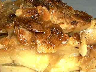 Raztopimo maslo, ga dodamo jabolkom in dobro premažemo. Jabolkom in maslu dodamo moko in pecilni prašek ter še enkrat dobro premešamo. Jabolčno maso na rahlo primešamo jajčni masi.