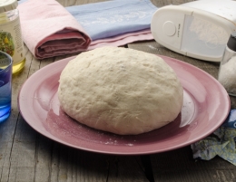 Testo je treba gnesti tako dolgo, da postane voljno in se ne prijema na posodo. Kuhinjsko krpo na hitro pomočimo v mlačno vodo in ožamemo. Testo za pico prekrijemo s krpo in za pol ure postavimo na toplo, da vzhaja.