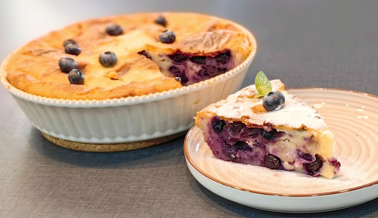 Dno pekača namažemo z maslom. Na dno damo en list vlečenega testa, na katerega dodamo tri žlice nadeva, ki ga enakomerno razmažemo po celi površini. Na to položimo novo plast vlečenega testa in tri žlice nadeva. Na tretjo plast vlečenega testa damo tri žlice nadeva in četrtino svežih borovnic. Ponovno sledi list vlečenega testa s tremi žlicami nadeva in postopek ponavljamo, tako da na vsako tretjo plast dodamo sveže borovnice.