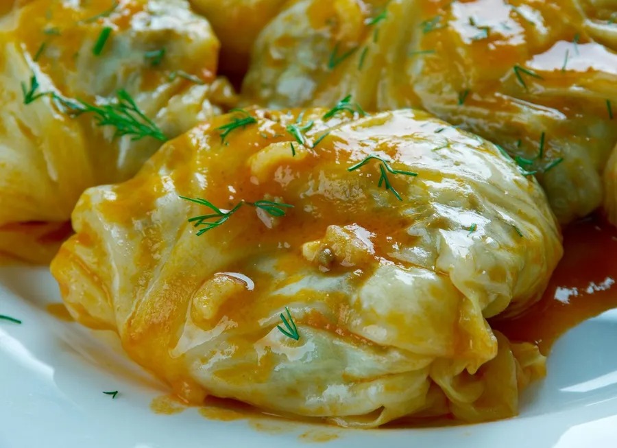Pripravite zeljnate liste tako, da jim odstranite trdi del na sredini. Vsak list napolnite z nadevom in ga tesno zavijte.