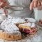 Pečeno pecivo približno 10 minut hladimo v modelu, nato pa previdno odstranimo obod in pustimo, da se pecivo povsem ohladi. Ohlajeno potrosimo s sladkorjem v prahu, narežemo na kose in postrežemo.