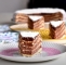 Po pol ure razvaljamo vse 4 krogle testa na mere pomaščenega in pomokanega modela z diagonalo 26′ cm. Po vrstnem redu naložite testo/kremo/testo/kremo/testo/kremo/testo.