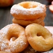 4 jabolka 70 g sladkorja 120 g moke 3 žlice ruma 0,5 žličke pecilnega praška Ščepec soli 2 jajci 150 ml sončničnega olja (za cvrtje) 100 ml piva 2 žlici sladkorja v prahu 1 čajna žlička cimeta