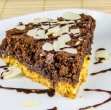 Model za peko v velikosti 30 x 40 cm z visokim robom obložimo s peki papirjem ter vlijemo maso za biskvit. Pečemo na 180 stopinjah približno 15 minut. Pustimo, da se bikvit ohladi.
