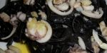Če bo omaka postala povsem črna, ne skrbite, takšna tudi mora biti. Medtem špagete oziroma bigole po navodilu na embalaži skuhamo na zob. Odcedimo jih, dodamo v ponev s črno omako, potresemo s sesekljanim peteršiljem, dobro premešamo in takoj postrežemo. Poleg seveda ponudimo dobro ohlajeno vino, kakršnega smo uporabili za kuhanje.