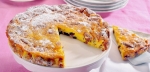 Zmes stresemo v pekač, ki smo ga dobro namastili ali obložili s papirjem za peko. Pecivo lahko spečemo v okroglem, kvadratnem ali pravokotnem pekaču. Po vrhu razporedimo cele mandlje, potem pa pekač za približno 45 minut potisnemo v ogreto pečico. Pecivo je pečeno, ko se po vrhu lepo zlato rumeno zapeče.
