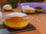 300 g marelične marmelade (za nadev) rastlinsko olje (za cvrtje) 30 g sladkorja v prahu (za posip)