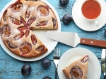 4. Testo prelijte v model za peko in po vrhu razporedite polovičke sliv.