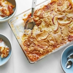 Pekač za 35 do 40 minut potisnemo v ogreto pečico. Med peko se bo testo dvignilo nad breskve in se bo po vrhu zlato rjavo zapeklo.