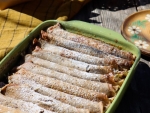 5. Vsako palačinko posebej namažemo, zvijemo in položimo v pekač.