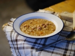 3. V svojem loncu skuhamo še prekajeno meso. Vodo shranimo, saj jo lahko dolijemo v ričet, če le ni preveč slana.