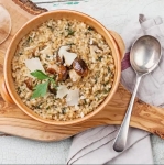 Gozdna rižota ali rižota z jurčki in parmezanom se prileže s kakšno sezonsko listnato solato. Rižota mora na segrete (!) krožnike, takoj (!) ko je kuhana. Samostojna jed za 2, predjed za 4. Zanimivo, da imajo Italijani posebno radi hladno rižoto dan po kuhanju. Ko se v njej sprostijo in razvijejo vsi okusi. Spremeni pa se tudi tekstura.
