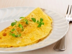 3. Prilijemo stepena jajčka, najbolje ob rob ponvice. Pri pripravljanju omlete naj se zmes ves čas premika: s krožnimi gibi jo vrtimo po ponvici, rahlo privzdigujemo z vilicami. Tako nadaljujemo kakšne tri minute. Omleta je pripravljena, ko je po vrhu videti še mokra, če jo bomo zvijali kot rulado, ne sme pa biti sledi nezakrknjenega beljaka.