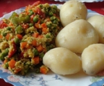 V drugi posodi skuhajte kuskus, ki ga na koncu le primešajte soparjeni zelenjavi. Ko je krompir skuhan, ga olupite in skupaj s soparjeno zelenjavo servirajte na krožniku.