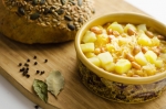 Med kuhanjem dodamo lovorjev list in po želji še nekaj koščkov veganske šunke.