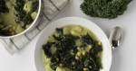 Pokrijemo posodo in pustimo stati nekaj minut, da se ohrovt skrči. Nato dodamo čičerike in kokosovo mleko. Od kokosovega mleka odvzememo 2-3 žlice mleka in ga premešamo z moko. Mešanico vmešamo v juho, jo kuhamo še 5 minut, da se zgosti in da se vse sestavine med seboj povežejo.